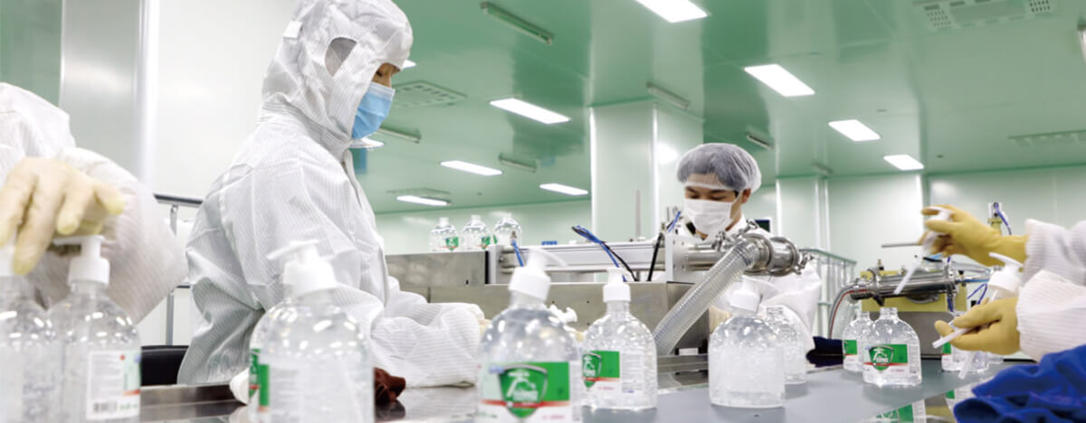 经过30多年的发展,现在我们的工厂占地面积超过100,000平方米,拥有防疫消毒、家清家卫、个人护理、母婴产品、宠物用品等众多类目的上百条生产线,高品质大规模的供应着全球市场的需求,一直是值得信赖的消费品供应商。
